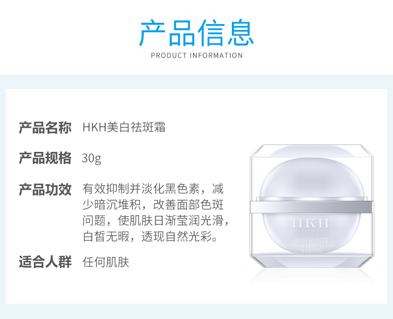 适用于任何肌肤,特别是肤色暗沉、色斑肌肤者。买2瓶送价值168元/盒的HKH紧致面膜2盒,买3瓶送3盒HKH紧致面膜