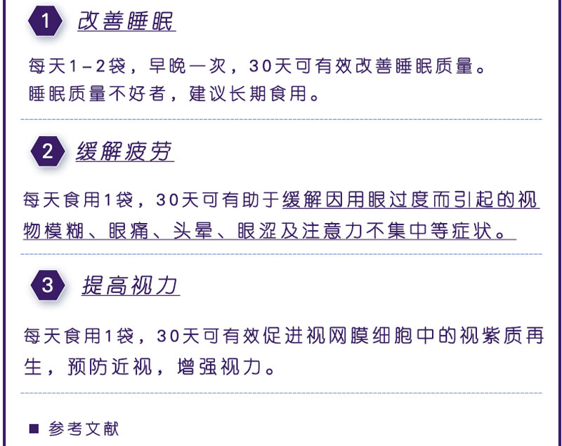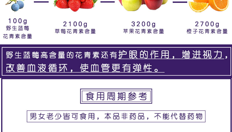 缓解眼干眼涩眼疲劳,增强视力, 强力抗氧化, 延缓衰老, 美容养颜,丰富的营养(新疆西藏不发货)。